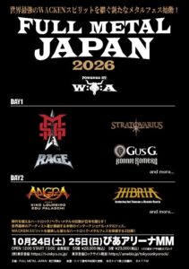 LIVE INFORMATION 陰陽座 他 陰陽座 ツアー2026『流転の現に夢喰らう也』 2026.09.08.tue〜2026.10.06.tue Alternation of Generations 他 Alternation of Generations ONE MAN LIVE TOUR 2026 2026.04.25.sat〜2026.05.24.sun エドゥ・ファラスキ 他 FULL METAL JAPAN 2026 ~Powered by WACKEN~ ぴあアリーナMM 2026.10.24.sat〜2026.10.25.sun イリュージョン・フォース 他 Evoken Fest 2026 東京 Kanda MyojinHall / 東京 Holiday Shinjuku 2026.08.29.sat〜2026.08.31.mon Fenyx Rising 他 Suomi Feast 2026 東京 Shibuya Stream Hall 2026.05.01.fri〜2026.05.02.sat Page 1 of 41234